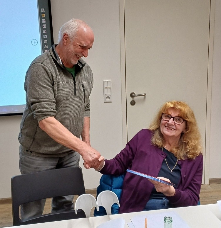 Im Herbst 2022 konnten Frau und Herr Kolhof, die den Verein „Zukunft entwickeln e.V.“ gegründet haben und ehrenamtlich leiten zu einem der monatlich stattfindenden Klönabende eingeladen werden, um eine Spende in Höhe der Gewinne aus den Verkäufern der Imkerprodukte auf dem Weihnachtsmarkt des Tierparks Nordhorn im Jahr 2021 zu übergaben.
